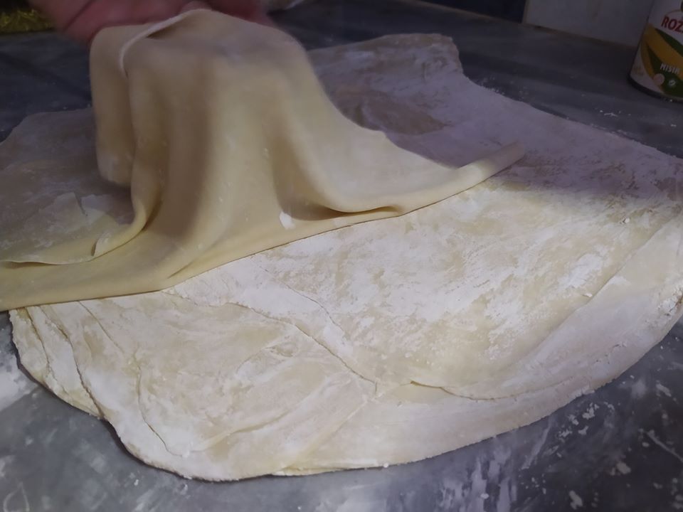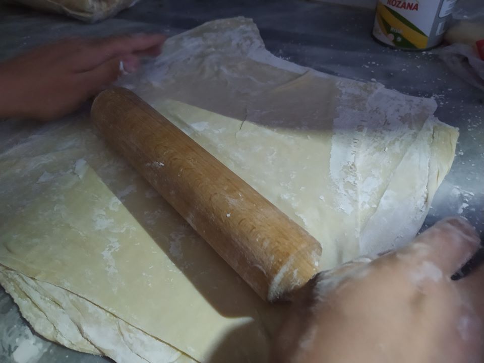 بعد ساعة من الزمن أصبحت عجينة "أم إياد" جاهزة، وبخفة حركت الشوبك فوق قطع العجين، وحولتها لطبقات رقيقة رتبتها بعناية فوق بعضها وملأت الفراغات بينها بخليط الجوز مع جوز الهند ونكهة ماء الزهر.