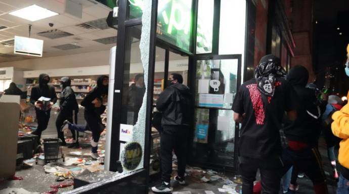 وفي حين نهبت متاجر نيويورك، أعلن الرئيس الأميركي دونالد ترامب "نشر آلاف الجنود المدججين بالأسلحة وعناصر من الشرطة لوقف أعمال الشغب والنهب والتخريب والاعتداءات والتدمير الوحشي للممتلكات" في واشنطن.