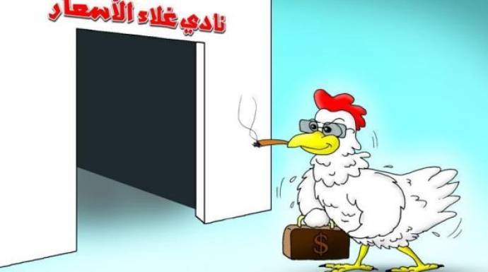 نقلت صحيفة "تشرين" التابعة للنظام عن عضو لجنة مربي الدواجن الذي يدعى حكمت حداد، قوله إن سعر الفروح من الممكن أن يصل في الأيام القادمة إلى 5 آلاف ليرة، لافتاً إلى أن المواطن يشتري الفروج حالياً بـ "بلاش"، لأن تكلفة الكيلو الحي 1600 ليرة سورية بينما يباع بـ1300 ليرة أي أقل من تكلفته.