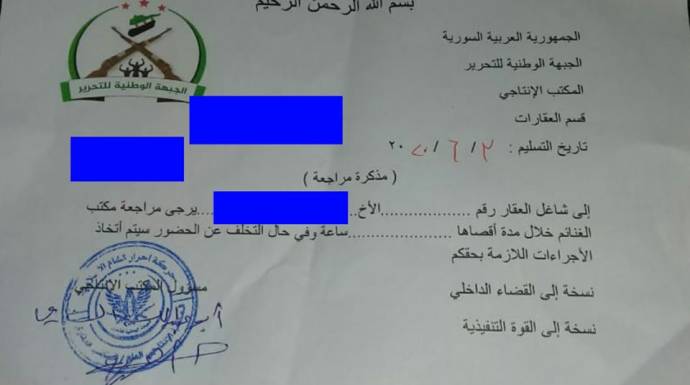 مصادر أهلية في البلدة قالت لـ "اقتصاد" إنّ المفرزة الأمنية في حركة أحرار الشام قامت خلال الأيام الماضية بتوزيع البلاغات لقاطني المنازل الشاغرة في الأحياء الجنوبية الشرقية من البلدة والمؤدية إلى مدينة بنش، مع التنويه باتخاذ إجراءات بحقهم في حال التخلف، وبحسب المصادر فإن المفرزة تُحاول إجبار القاطنين على توقيع عقود إيجار شهرية بقيمة 8 آلاف ليرة سورية كُل شهر ولمدّة ستة شهور.