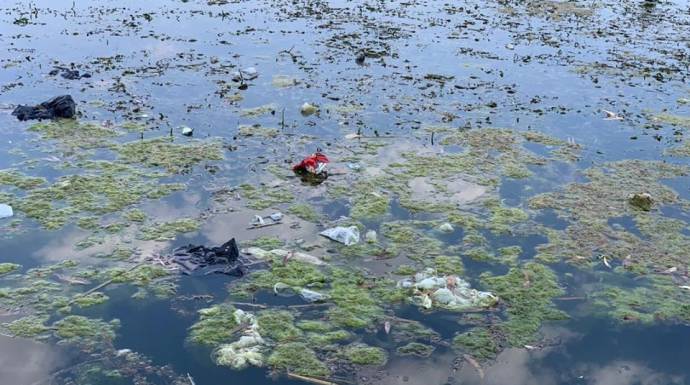 تناقل رواد على وسائل التواصل الاجتماعي صوراً مفزعة لنهر الفرات، وقد تحول إلى ساقية آسنة، بعد ركود المياه وانخفاض مستواها وتعكرها وامتلأت بالطحالب والأعشاب التي تعيق جريانه.