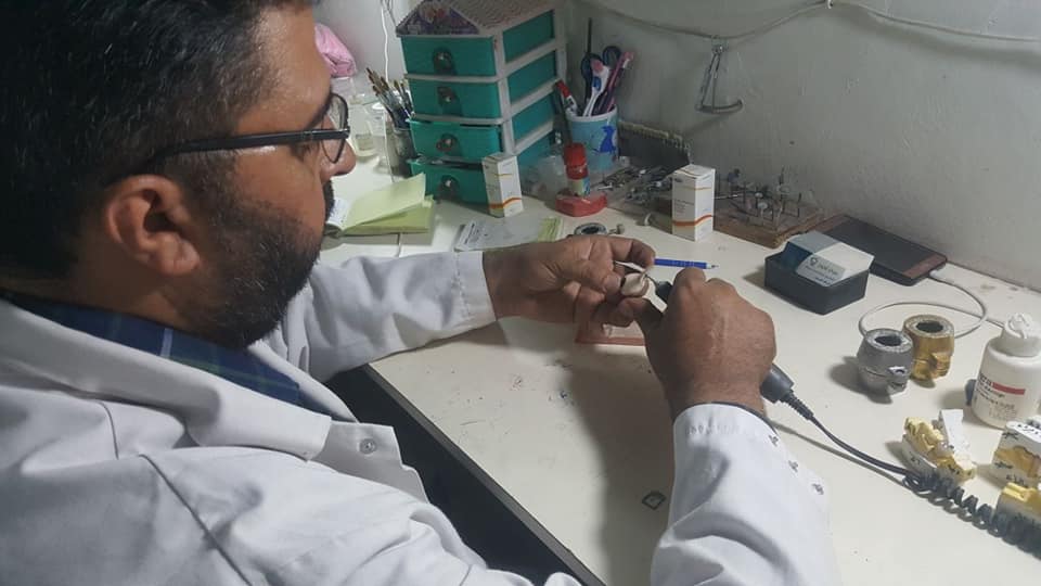 وأوضح محدثنا أنّ أولى الخطوات التي بدأها في مشواره المهني الجديد تمثلت بمشاهدة عشرات الفيديوهات والتجارب عبر اليوتيوب، بعدها انتقل لتطبيق ما شاهده في مخبر الأسنان الخاص به مستفيداً في ذلك من أجهزته وأدواته والمواد المستخدمة لصناعة أطقم الأسنان، ولكون المواد نفسها تقريباً استطاع تكييفها لصناعة العيون الزجاجية.
