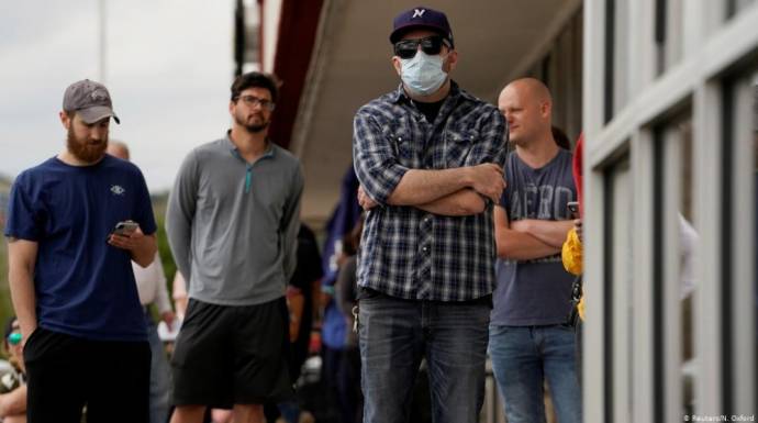 وفي كامل أبريل 2020، كسر عدد طلبات إعانة البطالة الرقم السابق المسجل في مارس، بتسجيله 20 مليون طلب جديد، وفق بيانات وزارة العمل الأمريكية.