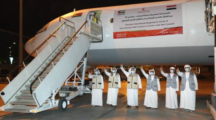 أكدت صحيفة "الوطن" الموالية للنظام، وصول طائرة مساعدة من الإمارات محملة بـ 25 طناً من المواد والتجهيزات الطبية، للمساعدة في مواجهة فيروس كورونا، بحسب ما ذكر الهلال الأحمر الإماراتي.