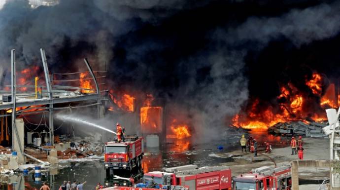 إخماد الحريق الضخم في مرفأ بيروت والنيران طالت مساعدات إنسانية