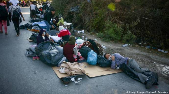 كان الآلاف من طالبي اللجوء قد امضوا ليلة رابعة نائمين في العراء في جزيرة ليسبوس اليونانية.