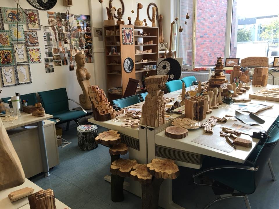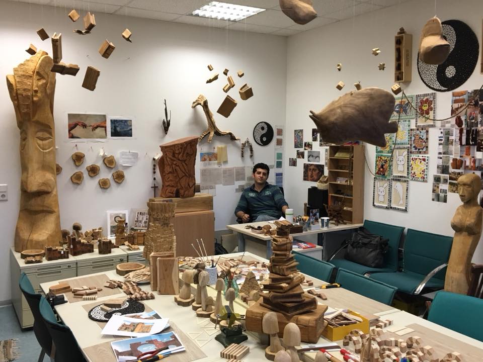 في ألمانيا التي لجأ إليها عام 2015 بدأت مرحلة جديدة في حياة الفنان الشاب، حيث تمكن من إنجاز ما يقارب الـ 400 عمل فني نحتي من بينها منحوتة خشبية باسم أوغاريت نحت عليها الأبجدية الأولى في التاريخ التي اكتشفت في الساحل السوري، وكذلك منحوتة باسم السجن وهي عبارة عن باب خشبي وخلفه رجل بملامح محزنة ويقوم بمد رأسه من الباب باحثاً عن الحرية ولكنه لا يحصل عليها لأن جسده مأسور في الداخل، وهي منحوتة توحي بأن خيال هذا السجين حر ولكنه سجين فيزيائياً.