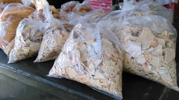 وأكدت المصادر، أنه قبل أيام اشترى أحد التجار كمية 500 كيلو خبز في حي صلاح الدين بحلب، من ضابط بسعر 200 ليرة للكيلو، حيث قام التاجر بدوره ببيع الخبز كعلف للحيوانات، بسعر 500 ليرة للكيلو بعد تيبيسه.