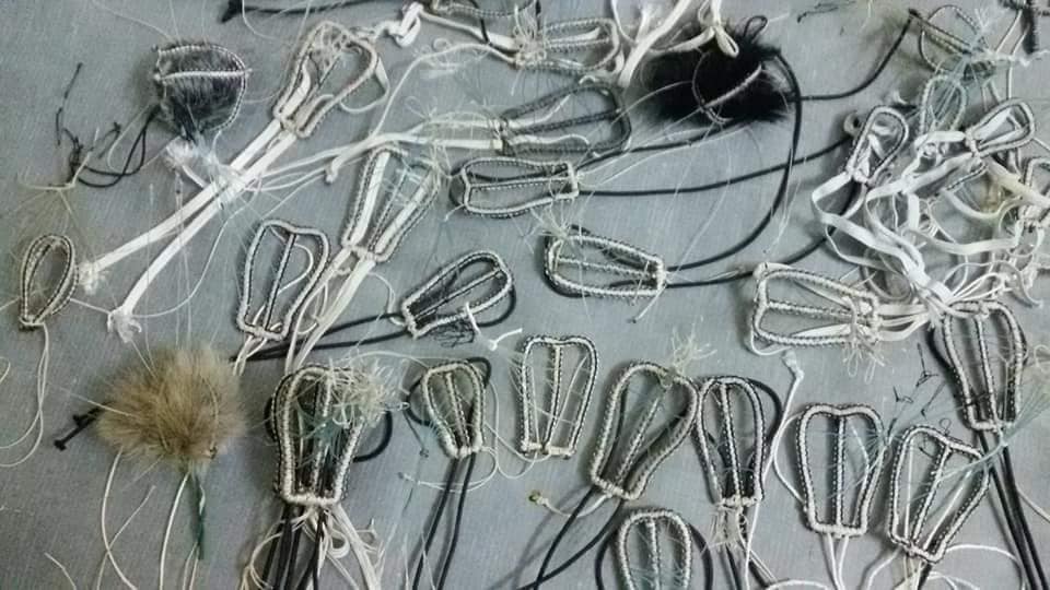 أمّا شبكة الحمام أو السُمان –يضيف عبد العزيز-، فتتم صناعتها عبر قصِّ خيط النايلون السمكي بطول 70 سم، ثمّ يبرم 14 مرة، ويلف مع بعضه 4 مرات ليصبح عيناً للشبكة مع صنع الخراط على رأسه بخيط الحرير الناعم، ويتم تكرار هذه العملية حتى الحصول على 12 عيناً، مع مراعاة وجود عقدة متينة في الجهة الأخرى كي لا تفلت العين من الشبكة.