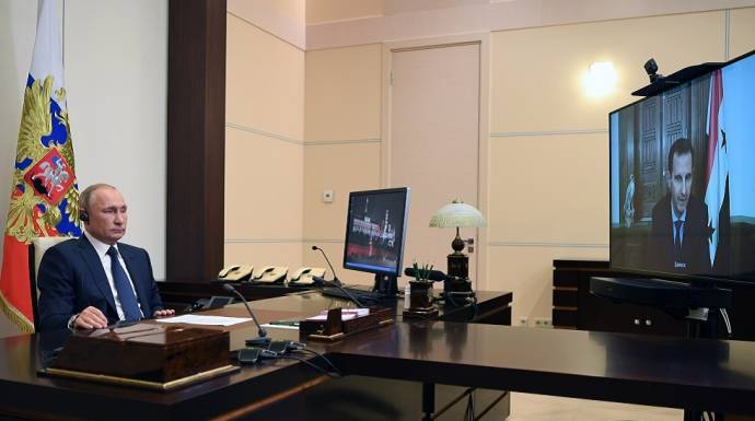 أجرى الرئيس الروسي، فلاديمير بوتين، لقاءً افتراضياً، عبر تقنية الفيديو كونفرانس، مع رأس النظام، بشار الأسد، يوم الاثنين، تمحور حول استعدادات عقد مؤتمر اللاجئين السوريين، في دمشق، المزمع عقده يومي الأربعاء والخميس.