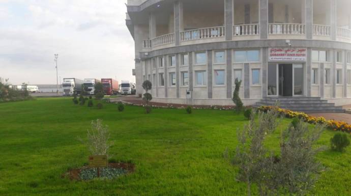 كما تم تشييد ساحات واسعة مجهزة لاستيعاب أعداد كبيرة من الشاحنات التي تضطر للبقاء في المعبر لفترات من الزمن.