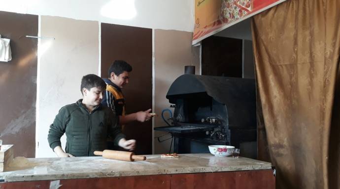 في أحد مطاعم الفلافل يعمل "عبد المجيد" قرابة 10 ساعات يومياً يقضيها في قلي الفلافل ولف السندويتش وطحن الحمص. كل ذلك لقاء 75 ليرة أسبوعياً.