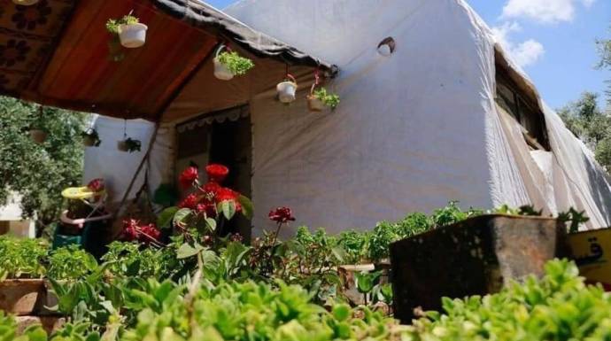 لاجئ شاب يحوّل خيمة نزوحه إلى مكان يضج بالخضرة والحياة