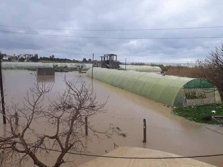 وكان القطاع الزراعي الأكثر تضرراً جراء السيول والفيضانات، إذ تجاوز عدد البيوت البلاستيكية المدمرة كلياً 439 في أكثر من 10 قرى ساحلية كالـ "المرقب - مجدلون - حريتون - جماسة - البيضا - مرقية - الطليعي - المنطا - ميعار - المحرك الفوقاني - الهيشة".