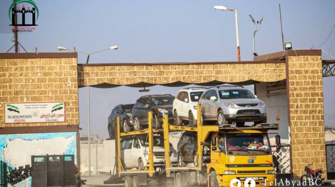 أعلن المجلس المحلي لمدينة تل أبيض التابعة لمنطقة "نبع السلام" شرقي سوريا، دخول دفعة من السيارات الأوروبية المستعملة، والمستوردة إلى المنطقة عبر معبر مدينة تل أبيض الحدودي.