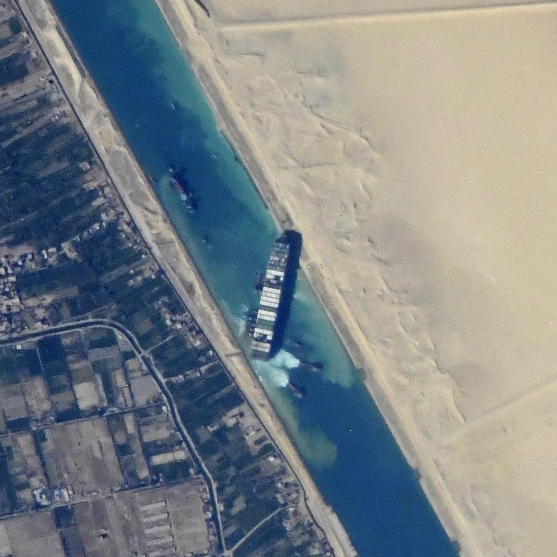 صور فضائية حديثة للسفينة العالقة بقناة السويس