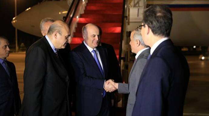 (الصورة المرفقة لـ رئيس أبخازيا أثناء استقباله في مطار دمشق الدولي من جانب موظف في وزارة الخارجية)