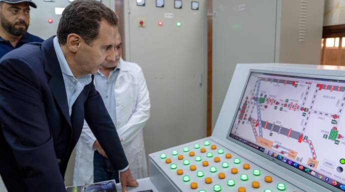 ومن جهة أخرى، وبخصوص زيارات بشار الأسد إلى المدن الصناعية في حمص ودمشق، والهدف منها، فهو متضمن في الخبر الذي نقلته وسائل إعلام النظام، بأن ذلك جزء من خطة "الرئيس" لمواجهة الحصار الغربي المفروض على سوريا، وبأنه يريد أن يعطي دفعة لأصحاب هذه المعامل، وبما يتوافق مع شعاره الانتخابي "الأمل بالعمل".