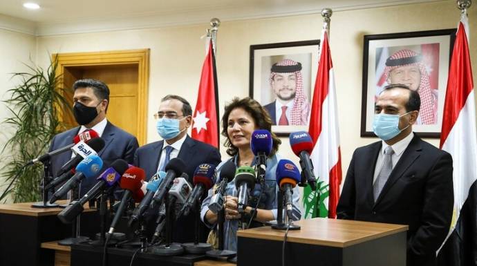 قالت وزير الطاقة والثروة المعدنية الأردنية، هالة زواتي، إنه لم يتم التوصل بعد إلى كيفية حصول سوريا على مقابل لمرور الكهرباء والغاز عبر أراضيها إلى لبنان. ورجحت أن يكون ذلك، مقابل غاز أو كهرباء، وليس بمردود مالي.