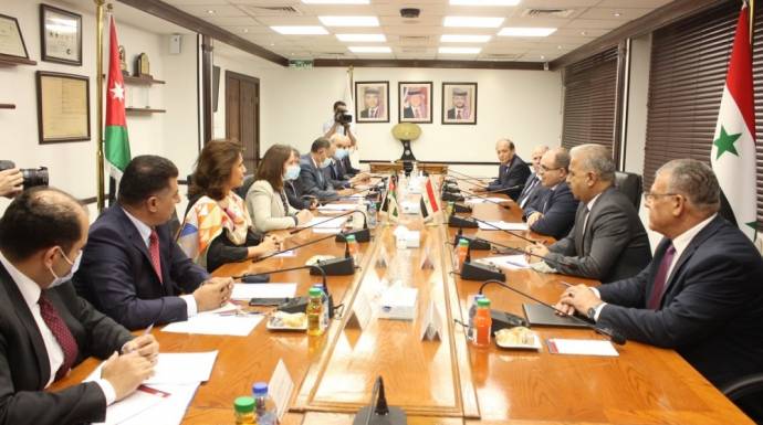 (الصورة المرفقة: اجتماع بين وزراء بحكومة النظام ووزراء أردنيين في عمّان)