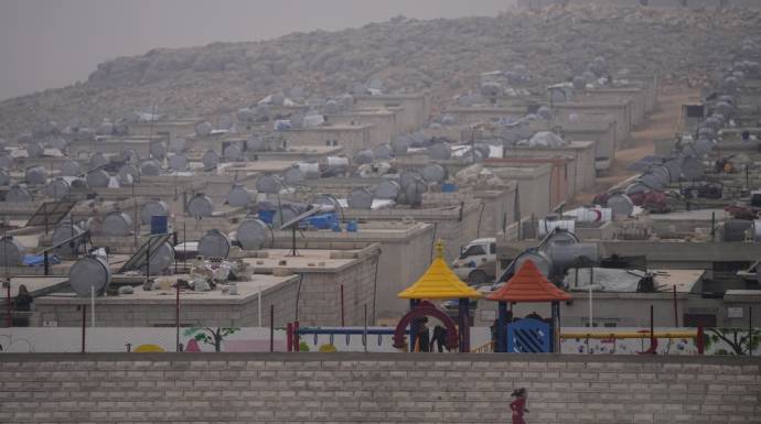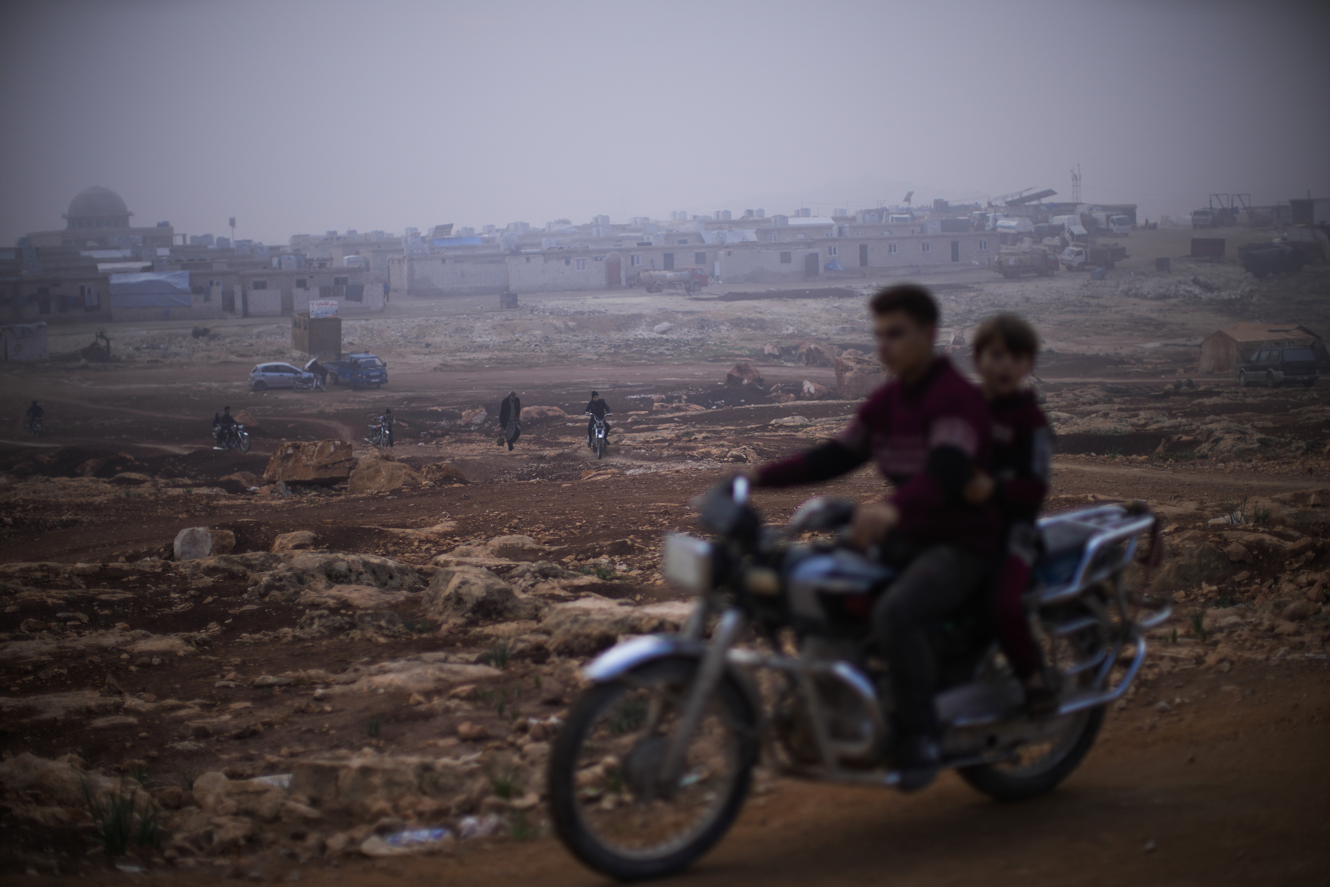في بلدة سرمدا التي تسيطر عليها المعارضة بالقرب من الحدود مع تركيا، يمضي آلاف النازحين السوريين حياتهم اليومية بأمل ضئيل في العودة إلى ديارهم في أي وقت قريب.