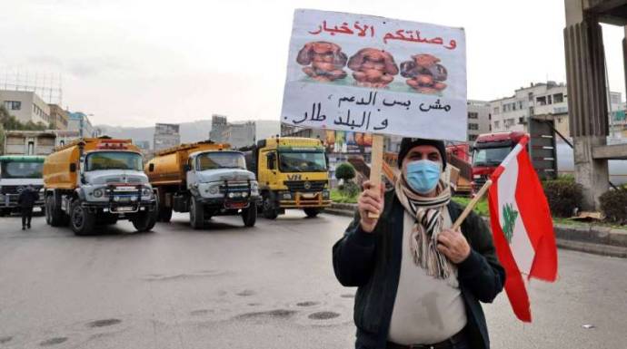 سد سائقو شاحنات وحافلات وغيرهم طرقا رئيسية في العاصمة اللبنانية ومناطق أخرى يوم الخميس احتجاجا على فشل السياسيين في معالجة أزمة اقتصادية خانقة خسفت بالعملة المحلية الأرض ورفعت الأسعار لعنان السماء.