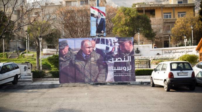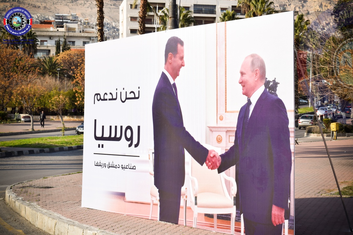 فوجئ أهالي دمشق بانتشار لوحات إعلانية كبيرة، في عدد من الشوارع الرئيسية في المدينة، حملت صوراً للرئيس الروسي فلاديمير بوتين، وأخرى لرئيس النظام السوري بشار الأسد، مع عبارات دعم لروسيا في حربها على أوكرانيا.