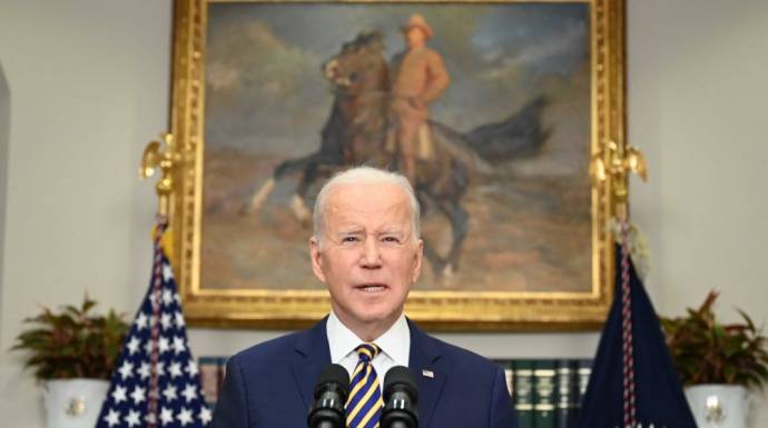 وقال بايدن للصحفيين في البيت الأبيض "نعلن حظر جميع واردات النفط والغاز الروسية .. وهذا يعني أنه لن يتم قبول النفط الروسي بعد الآن في الموانئ الأمريكية وسيوجه الشعب الأمريكي ضربة قوية أخرى لآلة حرب (الرئيس الروسي فلاديمير) بوتين".