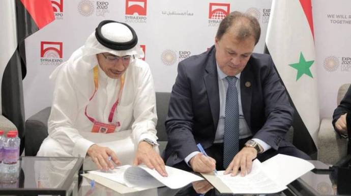 وقال المصري إن الإمارات من أهم الشركاء التجاريين لسوريا على المستوى العالمي حيث تحتل المرتبة الأولى عربياً والثالثة عالمياً، وتستحوذ على ما يتجاوز نسبته 14% من تجارة سوريا الخارجية.