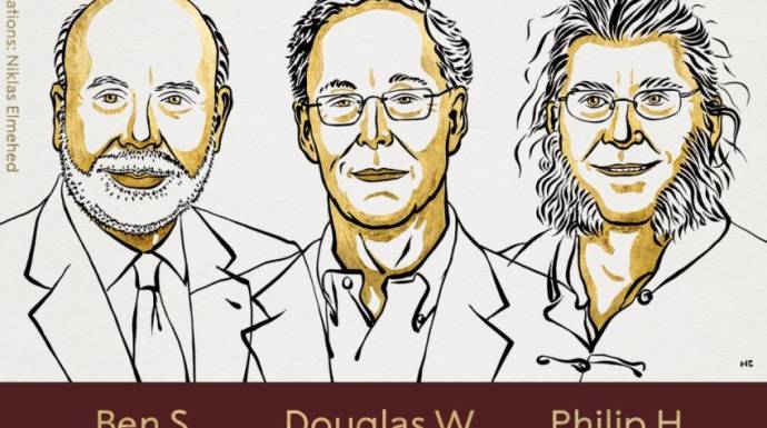 ذهبت جائزة نوبل في العلوم الاقتصادية هذا العام للرئيس السابق لمجلس الاحتياطي الفيدرالي الأمريكي، بن برنانكي، واثنين من الاقتصاديين المقيمين في الولايات المتحدة، وهما دوغلاس دبليو دايموند وفيليب إتش ديبفيغ، "لجهودهم البحثية عن البنوك والأزمات المالية".