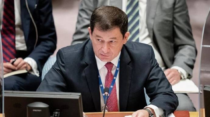 (في الصورة - نائب السفير الروسي لدى الأمم المتحدة دميتري بوليانسكي خلال اجتماع لمجلس الأمن الدولي في نيويورك)