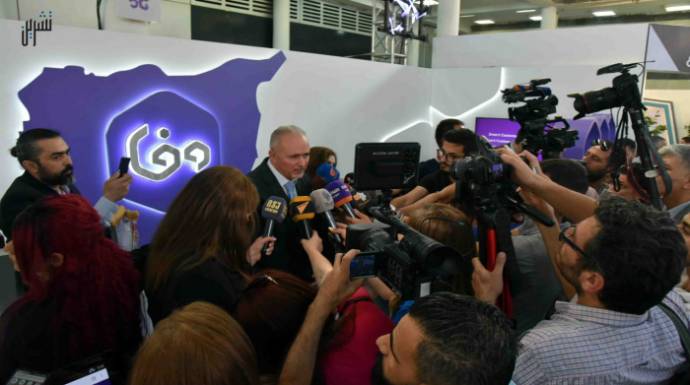 وذكرت وسائل إعلام النظام أن وزير الاتصالات زار بالأمس جناح شركة "وفا تيلكوم" وأعلن منه إطلاق تجربة الجيل الخامس لتقنيات الاتصال فايف جي التي احتكرتها الشركة دون الشركتين الأخريتين المشغلتين للخليوي في سوريا "سيريتل" و"إم تي إن".