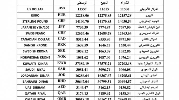 وقال المركزي في بيان نشره على صفحته الخاصة في "فيسبوك"، إنه من خلال المراجعات اليومية التي يقوم بها لنشرات أسعار الصرف، أصدر اليوم الأحد، تعديلاً بزيادة سعر صرف نشرة السوق الرسمية (التي تستخدم: لعمليات القطاع العام، تقييم بيانات المصارف، بدل الخدمة الالزامية، وغيرها من الاستخدامات) لتقارب نشرة الحوالات والصرافة، بهدف تخفيف الفجوة السعرية بين نشرات أسعار الصرف.