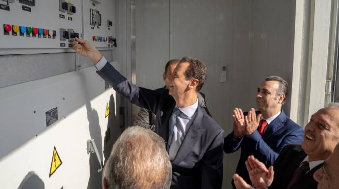 (صورة أرشيفية من افتتاح رأس النظام، بشار الأسد، لإحدى مشاريع توليد الكهرباء بالاعتماد على الطاقات المتجددة)