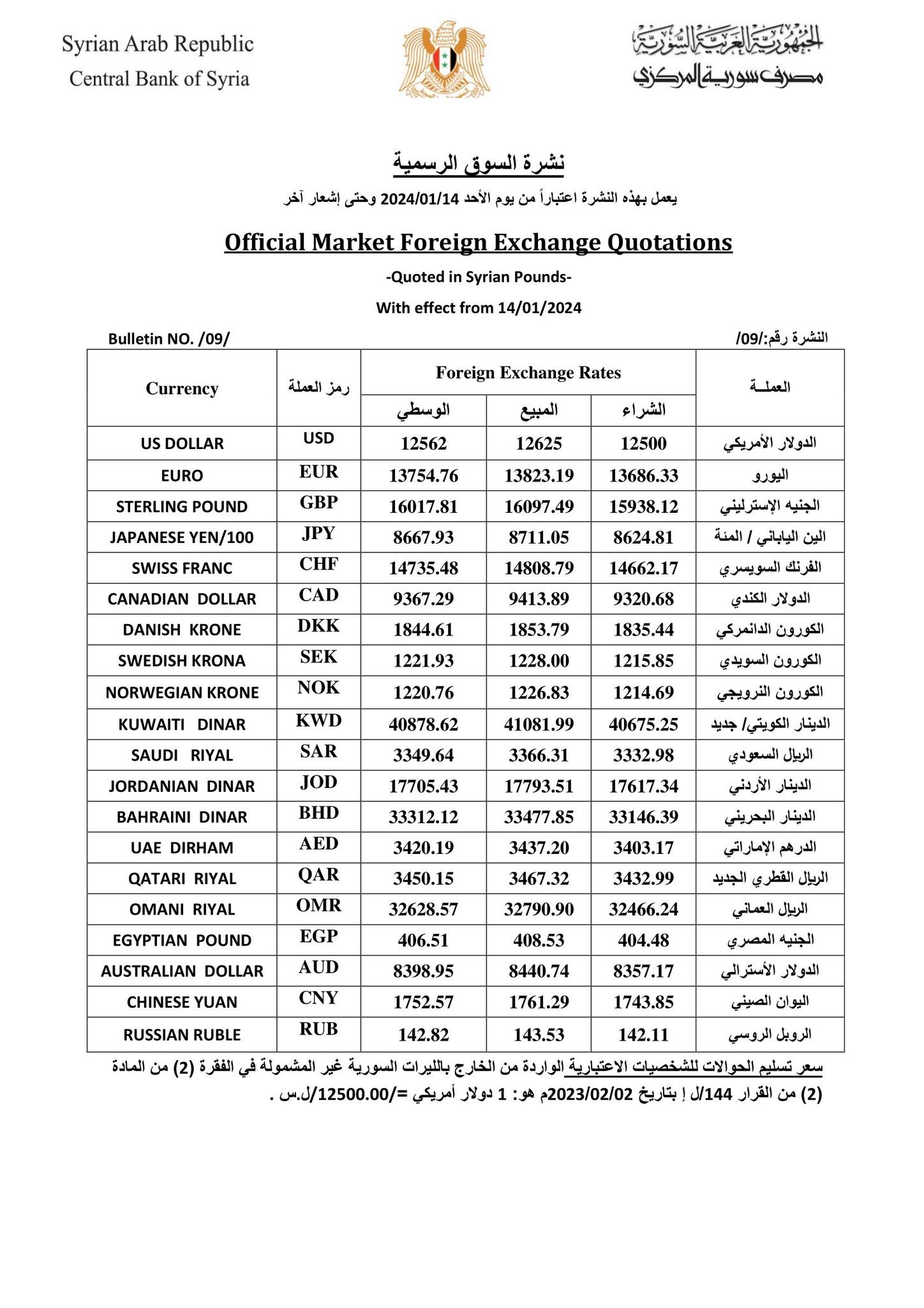 رفع مصرف سورية المركزي، الخاضع للنظام، سعر الصرف الرسمي لـ "دولار الحوالات"، صباح يوم الأحد.