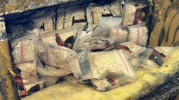 الأربعاء إن السلطات اكتشفت المخدرات مخبأة في آليات إنشائية ثقيلة عند معبر