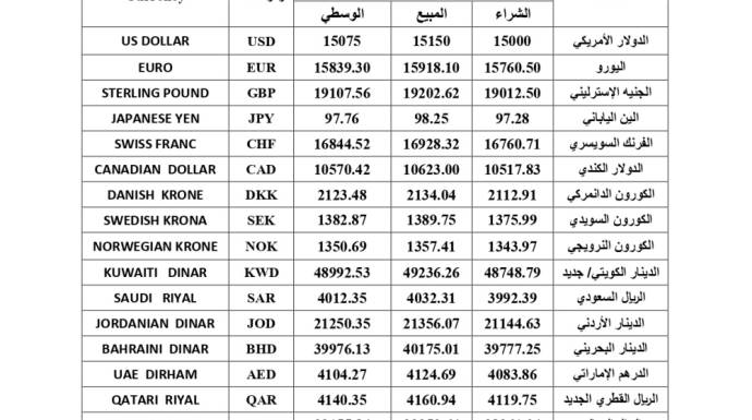 ووفق منصة رصد العملات، "الليرة اليوم"، فإن الدولار في دمشق وحلب يتراوح ما بين 15000 ليرة للشراء، و16000 ليرة للمبيع.