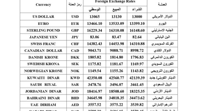 وخفّض المصرف سعر شراء الدولار –بما في ذلك "دولار الحوالات"-، 500 ليرة، ليصبح بـ 13000 ليرة. فيما حدّد المبيع بـ 13130 ليرة، وذلك في نشرتَي، "المصارف والصرافة"، و"النشرة الرسمية"، الصادرتين عنه، قبيل عصر الأحد.