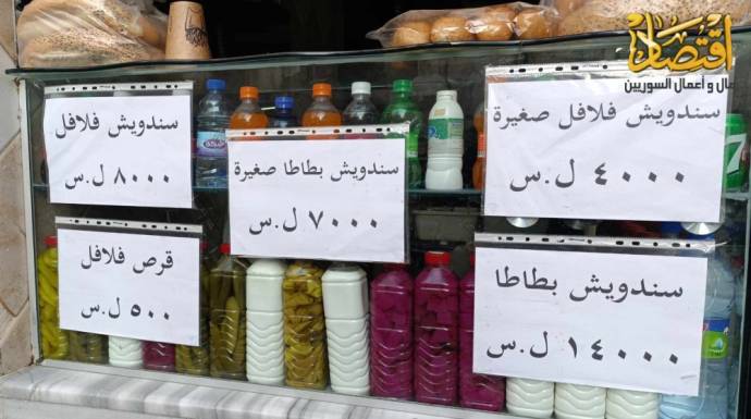 رصد "اقتصاد" أسعار عينة من سندويش المأكولات الشعبية في إحدى محلات دمشق القديمة.