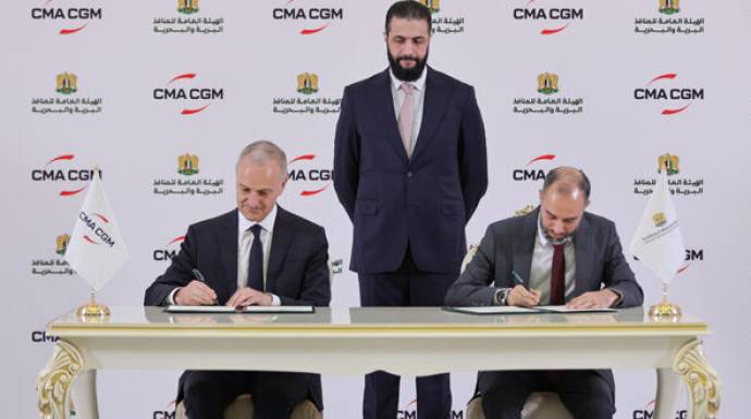 وقّعت هيئة المنافذ البرية والبحرية اتفاقية طويلة الأمد مع شركة CMA CGM الفرنسية، إحدى كبرى شركات الشحن البحري في العالم، لتشغيل وتطوير محطة الحاويات في مرفأ اللاذقية، في خطوة تهدف إلى تحديث البنية التحتية للموانئ السورية وتعزيز قدرتها التنافسية في قطاع النقل البحري الإقليمي والدولي.