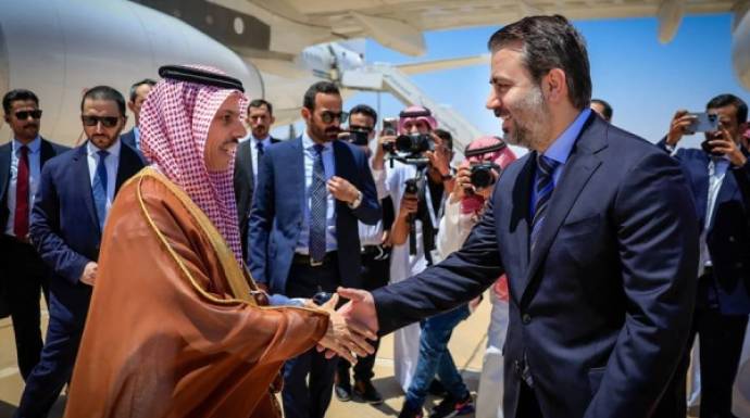 أكد وزير الخارجية السعودي، الأمير فيصل بن فرحان، خلال مؤتمر صحفي بمشاركة وزير الخارجية السوري أسعد الشيباني، أن السعودية ستقدم دعماً مالياً مشتركاً مع قطر، للعاملين في القطاع العام السوري. مؤكداً على تطلع السعودية لتعزيز الشراكة مع سوريا بما يسهم في تعزيز الاستقرار ودعم فرص النهوض الاقتصادي لتكون سوريا في موقعها ومكانتها الطبيعية.