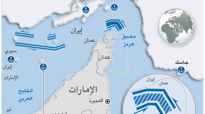 ويقع مضيق هرمز بين عُمان وإيران، ويشكل ممراً بحرياً حيوياً يربط الخليج العربي بخليج عُمان وبحر العرب. ونظراً لكميات النفط الهائلة التي تعبر هذا المضيق، فإنه يتميز بكونه أهم ممر نفطي في العالم. والأهم من ذلك، أنه نظراً لمحدودية الطرق البديلة لصادرات النفط من المنطقة، يتم ضخ ما يقرب من 90 في المائة من صادرات نفط الخليج العربي عبر مضيق هرمز. وقد نقلت ناقلات النفط ما يقدر بنحو 20 مليون برميل يومياً عبر هذا الممر في عام 2022. وهو ما يمثل ما يقرب من خُمس شحنات النفط العالمية. كما يمر عبره ما نسبته 20 في المائة من الغاز الطبيعي السائل.