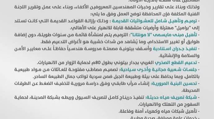 وأضافت المحافظة إنه وبناءً على تقارير وخبرات المهندسين المعروفين الأكفاء، وبناء على عمل وتقرير اللجنة الفنية المكلفة فإن المحافظة توضح العمل وفق ما يلي: