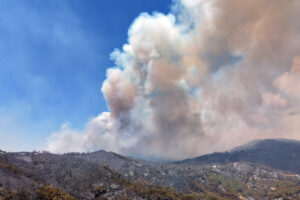 وأشار ظليطو الى أن المنطقة المحترقة تضم غابات صنوبر كثيفة، ما جعل الحريق يتحول إلى حريق تاجي سريع الانتشار، تصعب السيطرة عليه، مبيناً أن الجهات المعنية تواصل جهودها على مدار الساعة للحد من اتساع رقعة النيران، وحماية ما تبقى من الغطاء الأخضر في المنطقة.
