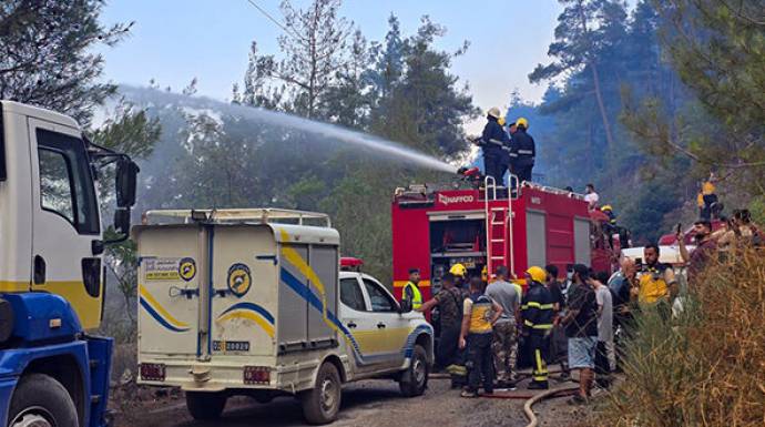 ويواجه الساحل السوري موجة حرائق التهمت حتى الآن نحو 14 ألف هكتار، واقتربت فيها النيران من المناطق السكنية، وسط صعوبات كبيرة تواجه فرق إطفاء الدفاع المدني، الناشطة بأقصى قدراتها، بدعم إقليمي ودولي، لإنهاء هذه الموجة المستمرة منذ ستة أيام.