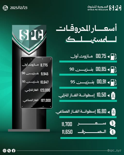رفعت الشركة السورية لتخزين وتوزيع المواد البترولية "محروقات"، أسعار المواد البترولية بالليرة السورية، في نشرة جديدة، صدرت عنها اليوم الثلاثاء.