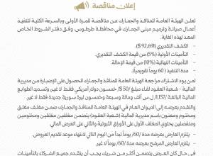 وحددت الهيئة الكشف التقديري بأكثر من 92 ألف دولار أمريكي، وبتأمينات أولية بنسبة 5% من قيمة الكشف التقديري، و10% تأمينات نهائية من قيمة الإحالة. أما مدة التنفيذ فتم تحديدها بـ 60 يوماً.