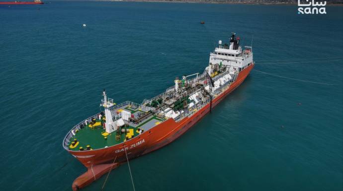 وفي الخبر الذي نقلته وكالة الأنباء السورية الرسمية "سانا"، أوضحت "السورية للبترول" أن عمليات الربط والتفريغ شملت حتى الآن ناقلة النفط الخام GRINCH بحمولة 99698 طنّاً مترياً، وناقلة البنزين JAN بحمولة 29583.085 طنّاً مترياً، وناقلة المازوت APATE بحمولة 60979.787 طنّاً مترياً، وناقلة الغاز GAS ZUMA بحمولة 2040.416 طنّاً مترياً.