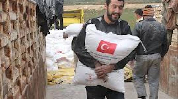 وتضمنت المساعدات التركية 11 طنا من الطحين، و6 أطنان من البطاطا، و4500 سلة غذاء، علاوة على كميات من الخبز وماء الشرب، كما شملت المساعدات ملابس وأحذية.