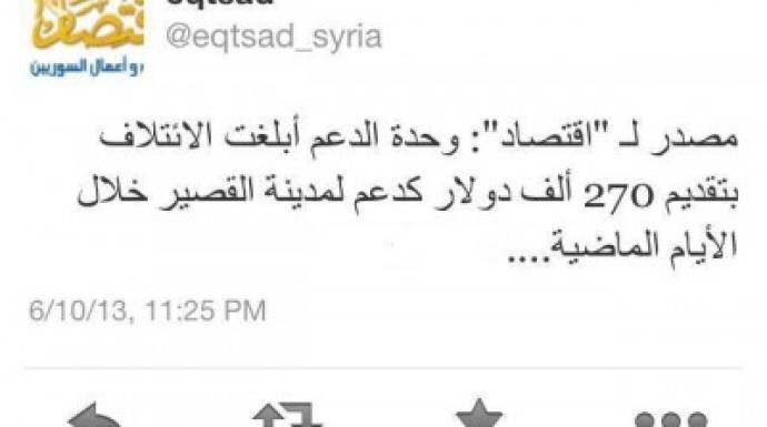 تفاصيل بلاغ وجّهته وحدة الدعم إلى الائتلاف...270 ألف دولار للقصير قبيل وبعيد اجتياحها من مقاتلي الأسد وحزب الله